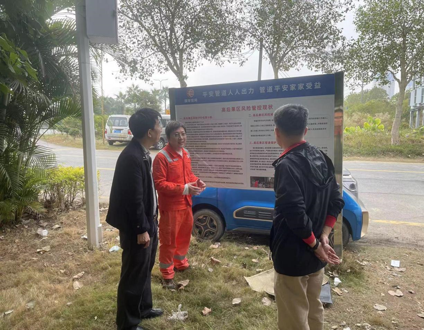 为深入贯彻落实国家、省、市、区关于做好2024年春节期间安全生产有关工作的决策部署,确保全区能源领域安全生产形势持续稳定,2月1日,春雨直播 发展和改革局局长谢栋华带队对国家石油天然气管网集团有限公司华南分公司位于棠下镇周郡村奥园外滩段的输油管道进行安全生产检查。