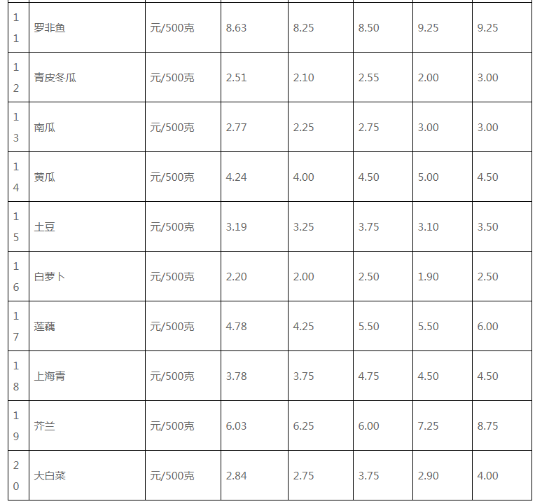 江门市菜篮子报价(12月19日)