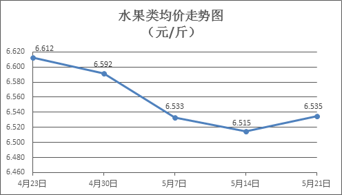 水果类商品价格略有回升。上周所监测的6种水果商品价格波动情况为4涨2跌,综合零售均价为6.535元/斤,环比上涨0.31%。其中苹果、香蕉、葡萄零售均价分别为每斤7.28元、3.23元、13.28元,环比分别下降0.14%、上涨0.62%、上涨0.91%。