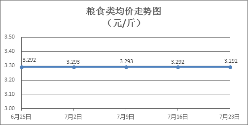 粮食类商品价格保持稳定。上周所监测的6种粮食商品价格均持平,综合零售均价为3.292元/斤。其中:丝苗米、油粘米、标准粉零售均价分别为每斤3.46元、3.42元、3.16元,环比均持平。