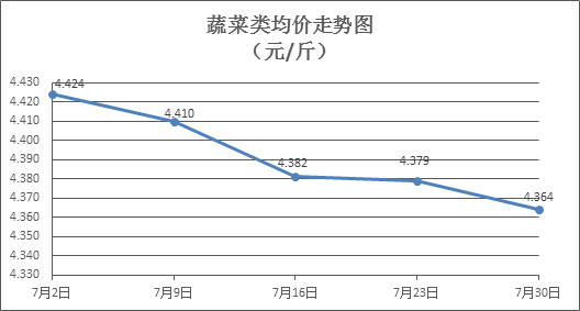蔬菜类商品价格升降互现。上周所监测的32 种蔬菜商品价格波动情况为11涨18跌3平,综合零售均价为4.364元/斤,环比下降0.34%。其中:涨幅居前的品种包括菠菜、蒜头、丝瓜,零售均价分别为每斤6.15元、7.68元、3.74元,环比分别上涨4.24%、1.99%、1.91%;跌幅居前的品种包括莲藕、花菜、西芹,零售均价分别为每斤5.02元、4.65元、4.98元,环比分别下降5.28%、5.10%、3.11%。