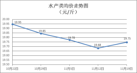 水产类商品价格总体略升。上周所监测的10种水产商品价格波动情况为5涨4跌1平,综合均价为19.75元/斤,环比上涨0.34%。其中:草鱼、鲢鱼、鲫鱼、罗非鱼、基围虾零售均价分别为每斤11.03元、9.23元、14.04元、8.49元、32.24元,环比分别上涨0.46%、下降2.53%、上涨0.21%、上涨0.24%、上涨0.09%。
