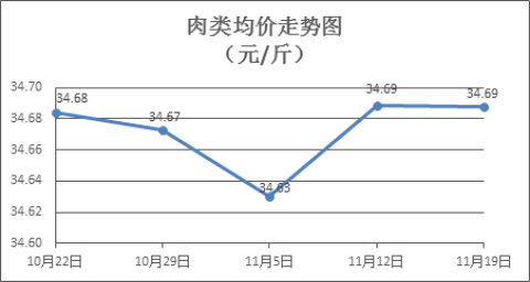 肉类商品价格窄幅盘整。上周所监测的8种肉类商品价格波动情况为4涨3跌1平,综合零售均价为34.69元/斤,环比持平。其中:排骨、精瘦肉、有皮上肉、牛肉、带骨羊肉零售均价分别为每斤29.49元、18.75元、14.43元、54.42元、43.82元,环比分别下降0.24%、下降0.05%、上涨0.21%、上涨0.18%、下降0.32%。