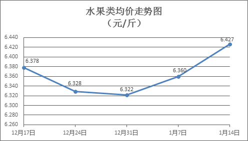 水果类商品价格总体略涨。上周所监测的6种水果商品价格波动情况为2涨4跌,综合零售均价为6.427元/斤,环比上涨1.05%。其中橙子、葡萄、梨零售均价分别为每斤5.31元、13.87元、6.02元,环比分别下降1.85%、上涨4.36%、下降0.33%。