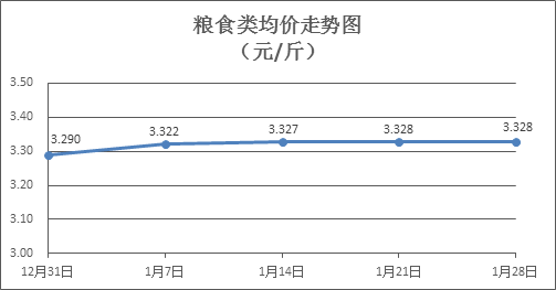 粮食类商品价格稳定。上周所监测的6种粮食类商品价格均持平,综合零售均价为3.328元/斤。其中:晚籼米、油粘米、标准粉零售均价分别为每斤3.29元、3.47元、3.20元,环比均持平。