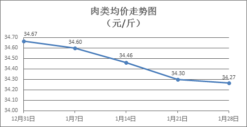 肉类商品价格窄幅盘整。上周所监测的8种肉类商品价格波动情况为4涨4跌,综合零售均价为34.27元/斤,环比下降0.10%。其中:排骨、精瘦肉、有皮上肉、牛腩、带骨羊肉零售均价分别为每斤29.26元、18.08元、14.34元、43.61元、44.49元,环比分别上涨0.21%、上涨0.56%、下降0.14%、下降0.64%、上涨0.16%。