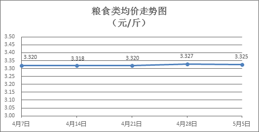 粮食类商品价格基本平稳。所监测的6种粮食类商品价格波动情况为1跌5平,零售均价为每斤3.325元,环比下降0.05%。其中:晚籼米、丝苗米、富强粉零售均价分别为3.26元、每斤3.56元、3.36元,环比分别持平、持平、下降0.30%。