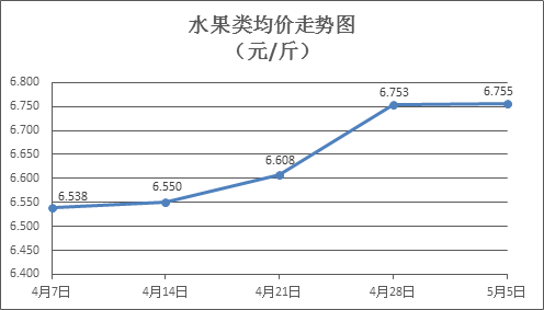 水果类商品价格微幅波动。所监测的6种水果商品价格波动情况为3涨2跌1平,综合零售均价为每斤6.755元,环比上涨0.02%。其中橙子、苹果、葡萄零售均价分别为每斤5.55元、7.39元、15.27元,环比分别上涨0.18%、持平、下降0.20%。