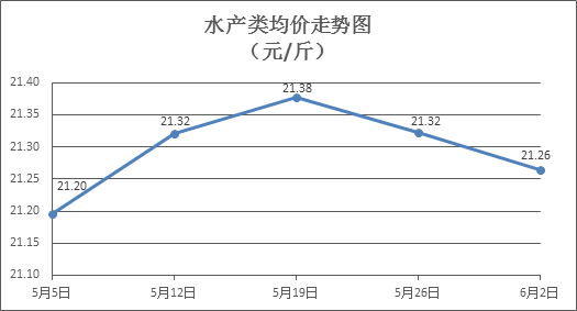 水产类商品价格窄幅波动。所监测的10种水产商品价格波动情况为3涨4跌3平,综合均价为每斤21.26元,环比下降0.28%。其中:草鱼、鲫鱼、罗非鱼、基围虾零售均价分别为每斤11.31元、14.26元、8.80元、31.63元,环比分别持平、下降0.21%、上涨0.11%、下降1.98%。