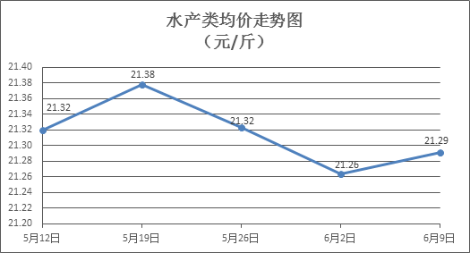 水产类商品价格总体略涨。所监测的10种水产商品价格波动情况为6涨1跌3平,综合均价为每斤21.29元,环比上涨0.13%。其中:草鱼、鲫鱼、罗非鱼、基围虾零售均价分别为每斤11.36元、14.33元、8.83元、31.38元,环比分别上涨0.44%、上涨0.49%、上涨0.34%、下降0.79%。