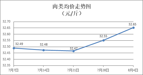 肉类商品价格总体略涨。所监测的8种肉类商品价格波动情况为5涨3跌,综合零售均价为每斤32.65元,环比上涨0.31%。其中:排骨、精瘦肉、牛肉、带骨羊肉零售均价分别为每斤31.83元、19.61元、45.56元、43.37元,环比分别上涨1.08%、上涨2.40%、下降0.70%、下降0.09%。
