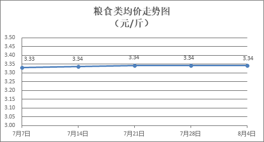 粮食类商品价格保持稳定。所监测的6种粮食类商品价格均持平,零售均价为每斤3.34元。其中:晚籼米、珍珠米、标准粉零售均价分别为每斤3.30元、3.11元、3.17元,环比均持平。