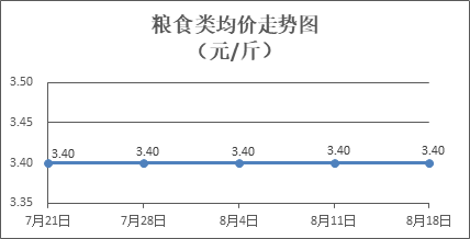 粮食类商品价格基本平稳。所监测的4种粮食类商品价格波动情况为1涨3跌,零售均价为每斤3.40元,环比上涨0.07%。其中:丝苗米、富强粉零售均价分别为每斤3.60元、3.37元,环比分别持平、上涨0.30%。
