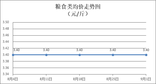 粮食类商品价格保持稳定。所监测的4种粮食类商品价格均持平,零售均价为每斤3.40元。其中:丝苗米、富强粉零售均价分别为每斤3.60元、3.37元,环比均持平。