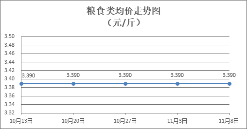 粮食类商品价格稳定。所监测的4种粮食类商品价格均持平,零售均价为每斤3.390元。其中:丝苗米、富强粉零售均价分别为每斤3.57元、3.36元,环比均持平。