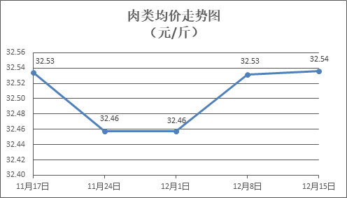 肉类商品价格窄幅盘整。所监测的8种肉类商品价格波动情况为3涨4跌1平,综合零售均价为每斤32.54元,环比上涨0.02%。其中:排骨、精瘦肉、肋条肉、牛肉、带骨羊肉零售均价分别为每斤31.80元、20.01元、16.96元、45.68元、42.15元,环比分别下降0.62%、下降0.50%、上涨0.77%、下降0.09%、上涨0.26%。