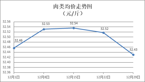 肉类商品价格普遍略降。所监测的8种肉类商品价格波动情况为1涨6跌1平,综合零售均价为每斤32.43元,环比下降0.27%。其中:排骨、精瘦肉、有皮上肉、牛肉、带骨羊肉零售均价分别为每斤31.46元、19.95元、16.00元、45.64元、41.85元,环比分别下降0.94%、下降0.25%、下降1.17%、下降0.09%、上涨0.17%。