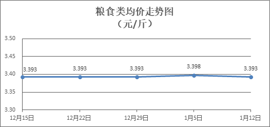 粮食类商品价格微幅波动。所监测的4种粮食类商品价格波动情况为1涨1跌2平,零售均价为每斤3.393元,环比下降0.15%。其中:丝苗米、富强粉零售均价分别为每斤3.53元、3.40元,环比分别下降1.40%、上涨0.89%。