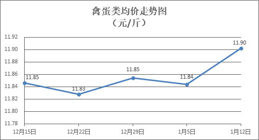 禽蛋类商品价格总体略涨。所监测的5种禽蛋类商品价格波动情况为1涨1跌3平,综合零售均价为每斤11.90元,环比上涨0.49%。其中:白条鸡、白条鸭零售均价分别为每斤20.93元、15.21元,环比分别上涨1.55%、下降0.20%;鸡蛋、咸鸭蛋零售均价分别为每斤6.56元、9.14元,环比均持平。