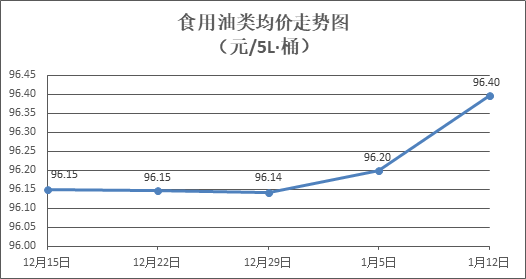 食用油类商品价格微幅上涨。所监测的9种食用油(5L装)商品价格波动情况为7涨2跌,综合零售均价为每桶96.40元,环比上涨0.20%。其中:金龙鱼花生油、金龙鱼调和油零售均价为每桶103.31元、71.86元,环比分别上涨0.16%、上涨0.25%。
