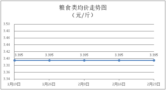 粮食类商品价格保持稳定。所监测的4种粮食类商品价格均持平,综合零售均价为每斤3.395元。其中:丝苗米、面粉零售均价分别为每斤3.54元、3.40元,环比均持平。