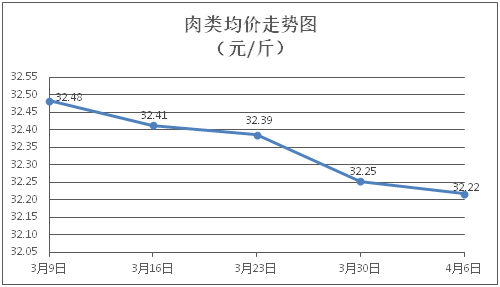 肉类商品价格小幅下降。所监测的8种肉类商品价格波动情况为1涨6跌1平,综合零售均价为每斤32.22元,环比下降0.11%。其中:排骨、精瘦肉、牛肉、带骨羊肉零售均价分别为每斤31.11元、19.43元、46.11元、41.15元,环比分别下降0.22%、下降1.17%、下降0.04%、上涨0.86%。