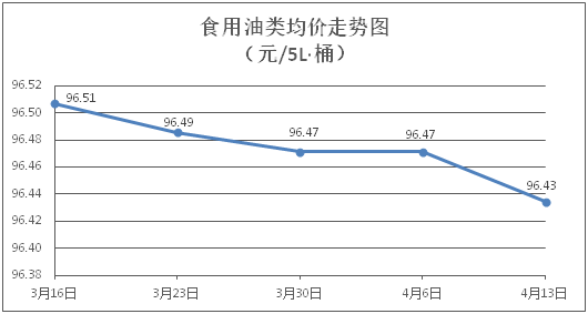 食用油类商品价格弱势盘整。所监测的9种食用油(5L装)商品价格波动情况为5涨2跌2平,综合零售均价为每桶96.43元,环比下降0.04%。其中:鲁花花生油、大豆油零售均价为每桶155.89元、62.07元,环比分别上涨0.04%、下降0.78%。