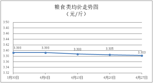 粮食类商品价格稳中微降。所监测的4种粮食类商品价格波动情况为1跌3平,综合零售均价为每斤3.383元,环比下降0.07%。其中:丝苗米、面粉零售均价分别为每斤3.49元、3.40元,环比分别下降0.29%、持平。