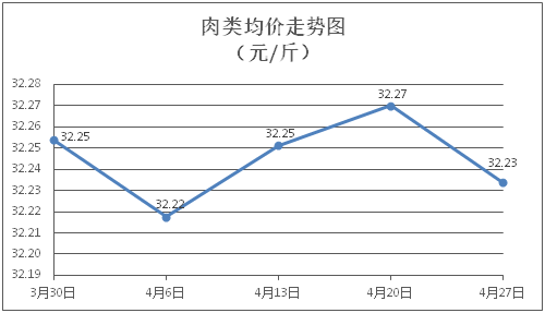 肉类商品价格窄幅盘整。所监测的8种肉类商品价格波动情况为3涨4跌1平,综合零售均价为每斤32.23元,环比下降0.11%。其中:排骨、精瘦肉、牛肉、带骨羊肉零售均价分别为每斤30.74元、19.17元、46.15元、42.29元,环比分别下降1.03%、下降0.10%、上涨0.09%、下降0.05%。