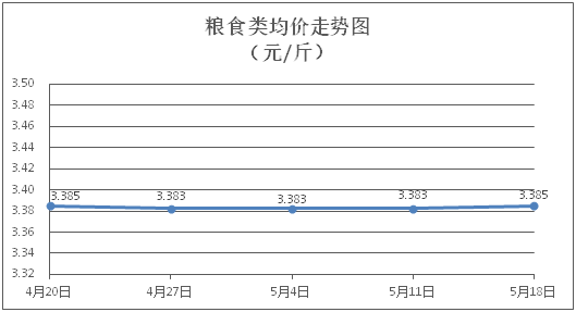 粮食类商品价格基本平稳。所监测的4种粮食类商品价格波动情况为1涨3平,综合零售均价为每斤3.385元,环比上涨0.07%。其中:丝苗米、面粉零售均价分别为每斤3.50元、3.40元,环比分别上涨0.29%、持平。