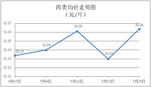 肉类商品价格微幅上涨。所监测的8种肉类商品价格波动情况为5涨2跌1平,综合零售均价为每斤32.26元,环比上涨0.10%。其中:排骨、精瘦肉、肋条肉、牛肉、带骨羊肉零售均价分别为每斤30.66元、19.28元、16.03元、46.34元、41.97元,环比分别上涨0.07%、下降0.16%、上涨0.31%、上涨0.02%、上涨0.55%。