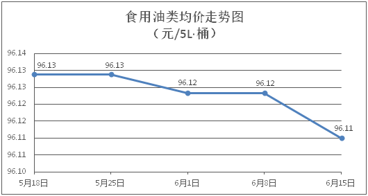 食用油类商品价格微幅盘整。所监测的9种食用油(5L装)商品价格波动情况为2涨2跌5平,综合零售均价为每桶96.11元,环比下降0.01%。其中:大豆油、玉米油零售均价为每桶61.63元、76.08元,环比分别上涨0.02%、下降0.21%。