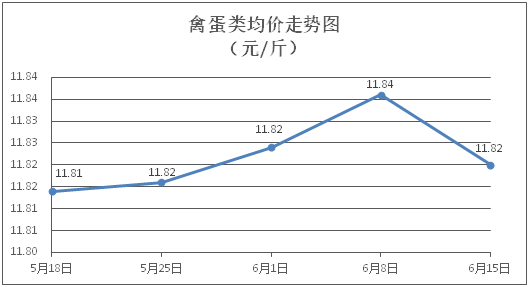 禽蛋类商品价格微降为主。所监测的5种禽蛋类商品价格波动情况为1涨4跌,综合零售均价为每斤11.82元,环比下降0.14%。其中:白条鸡、白条鸭零售均价分别为每斤20.67元、15.45元,环比分别下降0.34%、上涨0.39%;鸡蛋、鸭蛋零售均价分别为每斤6.63元、7.17元,环比分别下降0.15%、下降0.42%。