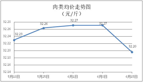 肉类商品价格微幅下降。所监测的8种肉类商品价格波动情况为1涨6跌1平,综合零售均价为每斤32.20元,环比下降0.23%。其中:排骨、精瘦肉、肋条肉、牛肉、带骨羊肉零售均价分别为每斤30.24元、19.03元、15.90元、46.43元、42.32元,环比分别下降0.43%、下降0.57%、下降0.75%、上涨0.11%、下降0.35%。