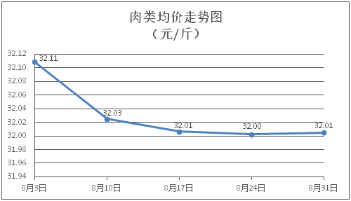 肉类商品价格微幅盘整。所监测的8种肉类商品价格波动情况为5涨3跌,综合零售均价为每斤32.01元,环比上涨0.01%。其中:排骨、有皮上肉、牛肉、带骨羊肉零售均价分别为每斤30.32元、15.09元、46.29元、42.05元,环比分别下降0.10%、上涨0.20%、上涨0.09%、下降0.19%。