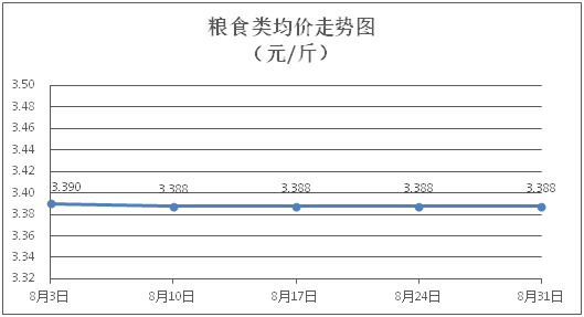 粮食类商品价格保持稳定。所监测的4种粮食类商品价格均持平,综合零售均价为每斤3.388元。其中:丝苗米、面粉零售均价分别为每斤3.51元、3.39元,环比均持平。