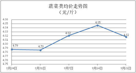 据本市21家农贸市场监测数据显示,上周(9月15日至9月21日)市场上各类“菜篮子”商品供应充足,所监测的7大类“菜篮子”商品价格环比总体表现为4涨2跌1平。其中:粮油类商品价格稳中略涨,肉禽类、蔬菜类商品价格总体略降,蛋类、水果类、水产类商品价格有所回升。