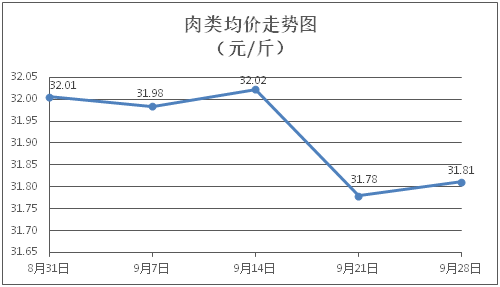 肉类商品价格微幅上涨。所监测的8种肉类商品价格波动情况为6涨2跌,综合零售均价为每斤31.81元,环比上涨0.10%。其中:排骨、精瘦肉、牛肉、带骨羊肉零售均价分别为每斤30.47元、18.91元、46.45元、40.12元,环比分别上涨0.73%、下降0.42%、上涨0.09%、上涨0.10%。