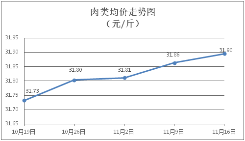 肉类商品价格稳中微涨。所监测的肉类商品价格波动情况为2涨1跌5平,综合零售均价为每斤31.90元,环比上涨0.10%。其中:排骨、精瘦肉、牛肉、带骨羊肉零售均价分别为每斤30.17元、18.36元、46.91元、41.00元,环比分别下降0.03%、持平、上涨0.34%、上涨0.24%。