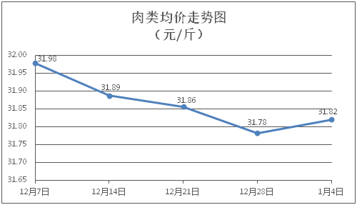 肉类商品价格窄幅盘整。所监测的肉类商品价格波动情况为3涨4跌1平,综合零售均价为每斤31.82元,环比上涨0.12%。其中:排骨、精瘦肉、牛肉、带骨羊肉零售均价分别为每斤29.33元、18.14元、46.76元、41.44元,环比分别下降0.07%、下降0.33%、上涨0.21%、上涨0.19%。