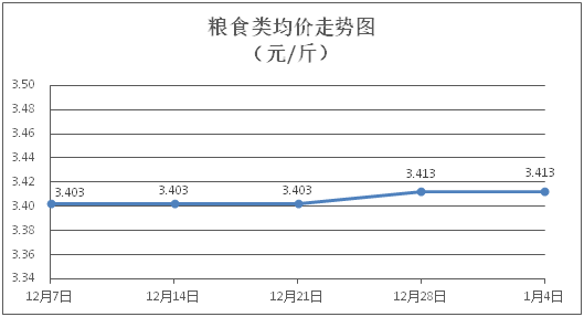 粮食类商品价格维持稳定。所监测的4种粮食类商品价格均持平,综合零售均价为每斤3.413元。其中:丝苗米、面粉零售均价分别为每斤3.54元、3.38元,环比均持平。