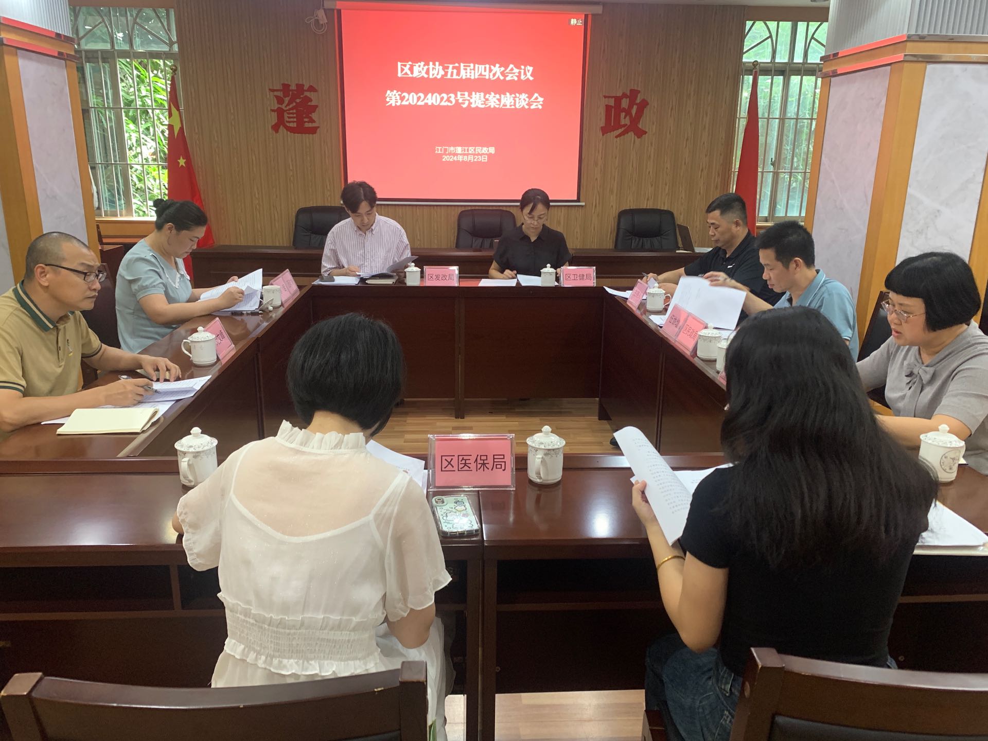 为进一步落实“办前有沟通、办中有联系、办后有反馈”的“三沟通”机制,加强与政协委员的沟通和交流,切实提高政协提案的办理质量,8月23日下午,由主办单位区民政局牵头,联同区发展和改革局、区卫生健康局、市医疗保障局蓬江分局等会办单位召开区政协五届四次会议第2024023号提案座谈会。会议邀请区政协提案委员会苏莹主任出席参加并开展互动交流,会议由区民政局副局长伍协增主持。