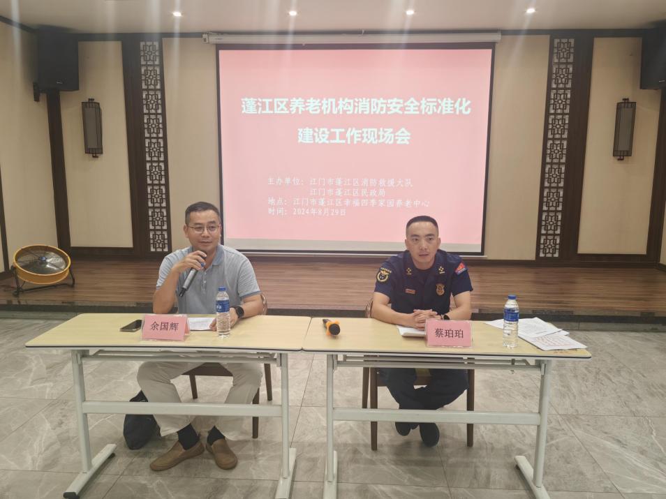 为全面推进养老机构消防安全标准化建设,提高机构火灾防范及应急处理能力,切实保障人民群众生命财产安全,8月29日下午,春雨直播 民政局联合春雨直播 消防救援大队在春雨直播 幸福四季家园养老中心组织召开春雨直播 养老机构消防安全标准化建设工作现场会。区民政局副局长余国辉、区消防救援大队工程师蔡珀珀及辖区各养老机构安全管理员等30人参加了本次培训。
