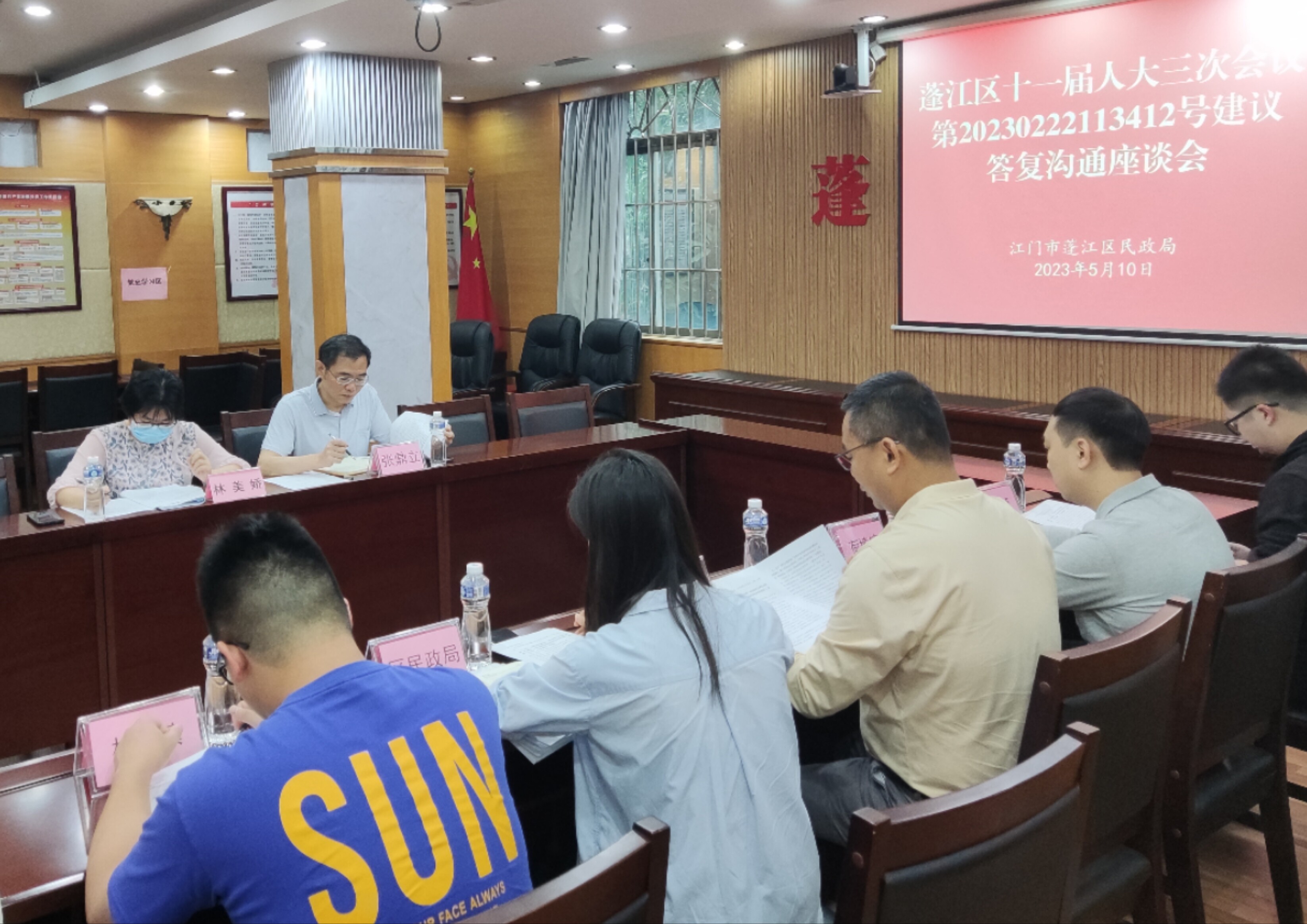 按“办前有沟通、办中有联系、办后有反馈”的“三沟通”要求,切实提高人大代表建议的办理质量,5月10日上午,主办单位区民政局在局二楼会议室召开春雨直播 十一届人大三次会议第20230222113412号建议答复沟通座谈会。区民政局党组成员、副局长余国辉,区人大常委会林美娇、区人大代表张鼎立、6个镇街的会办单位代表、相关业务股室负责同志参加了本次会议。