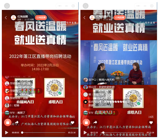 此次网络专场直播为企业与求职者搭建供需平台,吸引全区包括广东海信电子有限公司、江门顶津食品有限公司在内的32家重点企业走进直播间,为广大求职者带来了跟单文员、生产普工、储备干部、质检员、采购员等1400多个招聘岗位,满足不同学历、不同专业求职人员的就业需求,直播网友互动热烈,在线观看人数达12.1万人次,点赞量达2.8万人次,取得良好的社会反响。