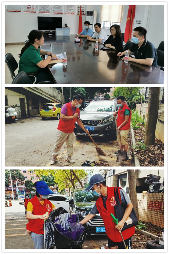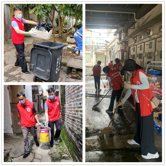 对照责任目标,区人社局党员干部带头,志愿者迅速下沉到挂点的侧贤、东华和港口社区,与社区工作人员重点深入到辖区各小区、主次干道、背街小巷、公共设施、楼道间等重点区域卫生死角进行全面清理,确保卫生无死角。志愿者们统一身着红马甲,在前期张贴通知引导群众自查自改环境卫生问题的基础上,重点针对仍堆放在闲置空地、楼道、楼梯间的大件杂物和垃圾进行整治,并对乱停放的共享单车、电瓶车进行搬运和有序摆放,同时对公共绿化带内垃圾进行“扫描式”清理。