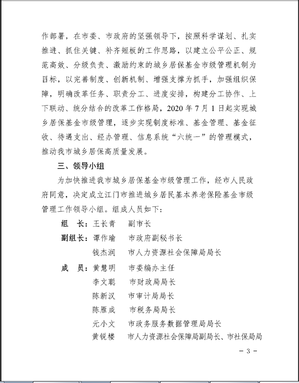 江门市推进城乡居民基本养老保险基金市级管理工作方案