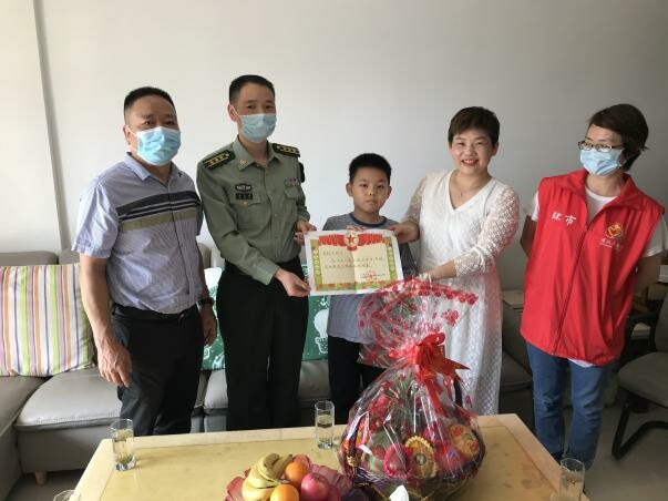 区人民武装部部长杨丛雄、区退役军人事务局龙金与高乾飞妻子孙辉亲切交谈,了解其工作和生活状况,感谢其对丈夫军人事业的支持,独自承担起家庭和生活的重担,付出比常人更多的艰辛。孙辉拿丈夫的喜报,满脸喜悦和自豪,她表示非常感谢党和政府对军属的关怀,无论任何时候,她都会做丈夫坚强的后盾,支持党和政府的工作。高乾飞一家三代都是军人,三代军人的妻子都是用军人的本色作为孩子学习的向导,教导孩子树立正确的人生观和价值观,忠于党和国家的事业,希望下一代也能入伍从戎、报效祖国。