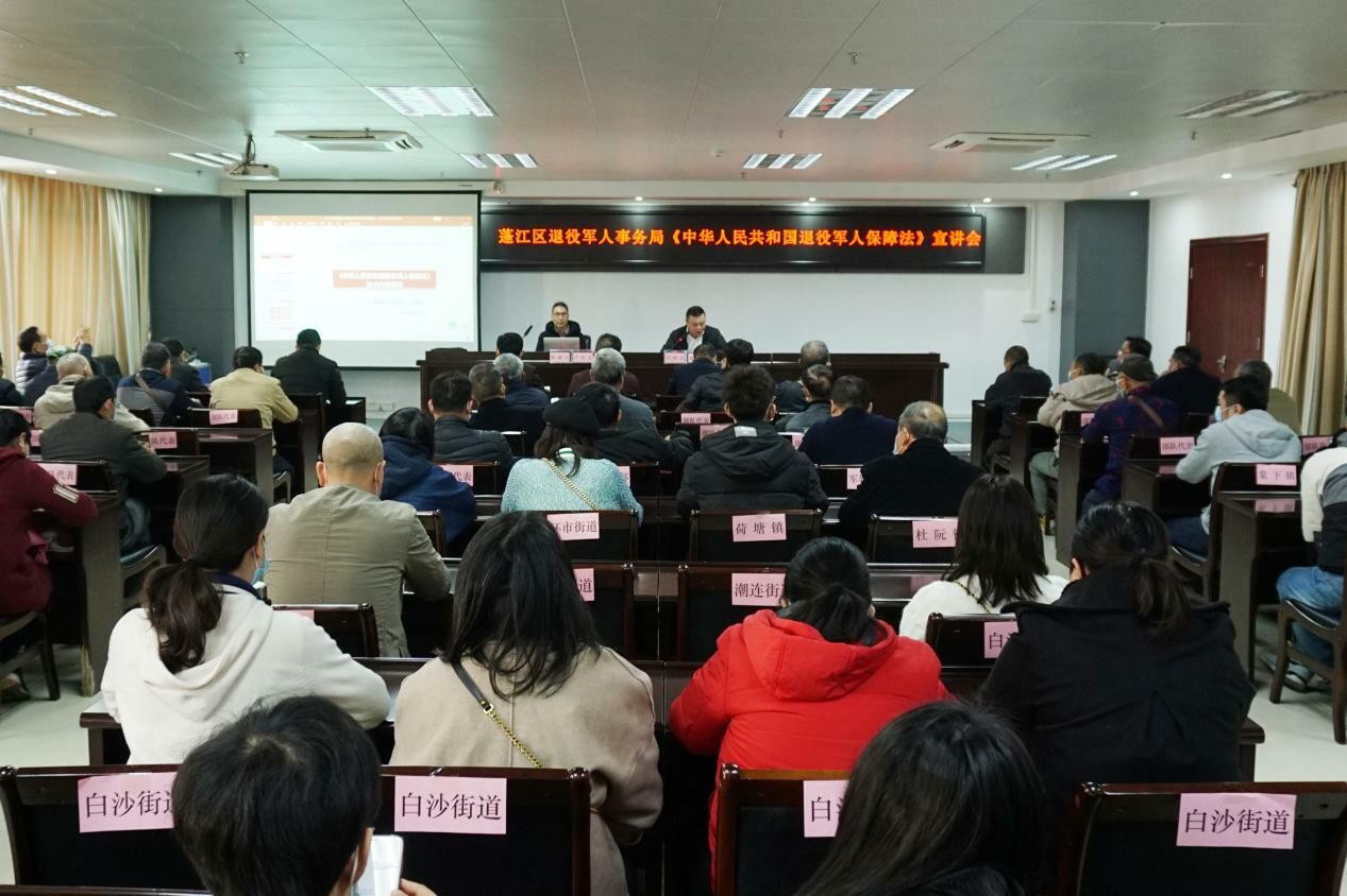 为更好地学习宣传贯彻《中华人民共和国退役军人保障法》(下称《保障法》),提高全区广大退役军人和服务退役军人工作者的学法、懂法、用法的意识,维护广大退役军人的合法权益,1月4日区退役军人事务局举办《中华人民共和国退役军人保障法》宣讲会,邀请江门职业技术学院卢昌文教授对《保障法》进行全面解读。区、镇(街)、村(社区)三级退役军人服务体系干部、退役军人代表等参加本次宣讲会。