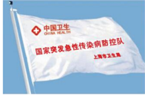 1.参照《国家卫生应急队伍标识(试行)》 2.第一行为中国卫生LOGO,第二行为队伍名称,第三行为单位名称应急队旗(1290*1280MM) |